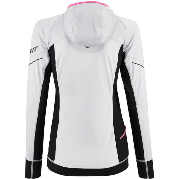 Long sleeve trail running shirt with tight fitting hood for the cold months.